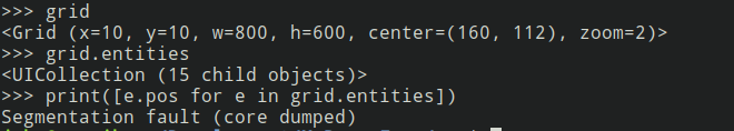grid.entitiesshould cooperate with the iterator (UIEntityCollectionIter?) to allow... for e in grid.entitiesto function.